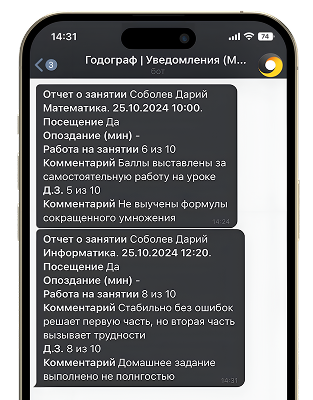 Смс-отчетность родителям в телеграм-боте после каждого урока